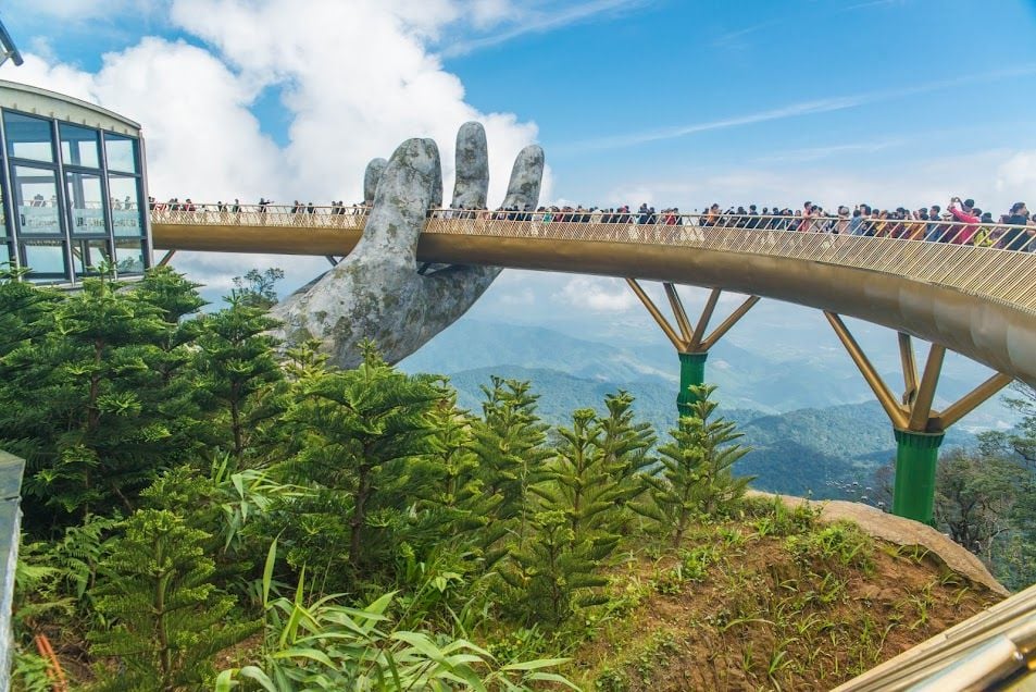 Chốn “Bồng lai tiên cảnh” Bà Nà Hills cách sân bay quốc tế Đà Nẵng khoảng 42 km về phía Tây Nam. Để đến địa điểm này, bạn có thể bắt xe đón tại sân bay Đà Nẵng và di chuyển khoảng 25km để đến chân núi, sau đó bạn đi bằng cáp treo để đến đỉnh Bà Nà. Tại đây, du khách có thể check-in với phong cảnh đẹp tựa tranh vẽ, cũng như tham gia các hoạt động vui chơi, giải trí, mua sắm,... đầy thú vị.